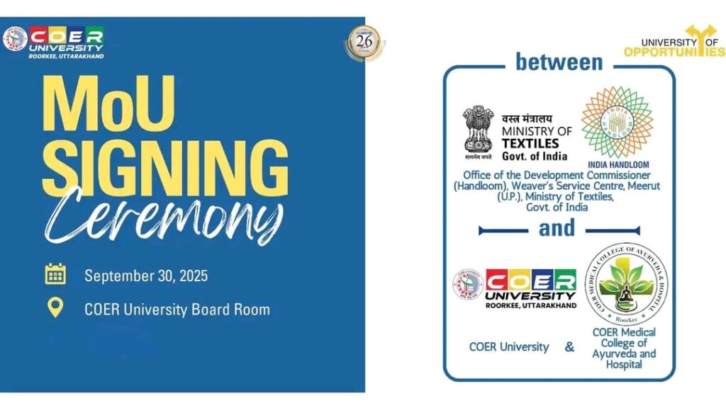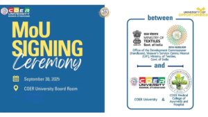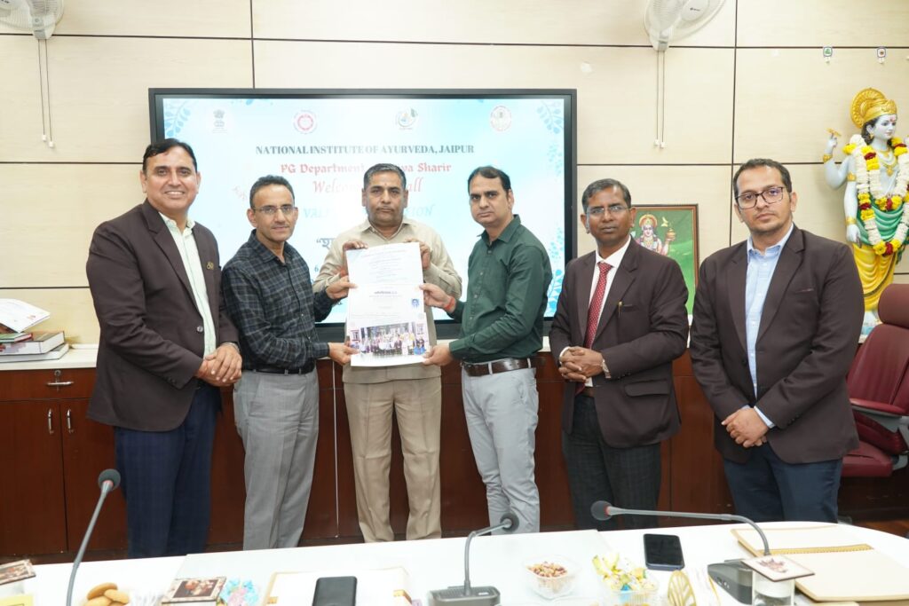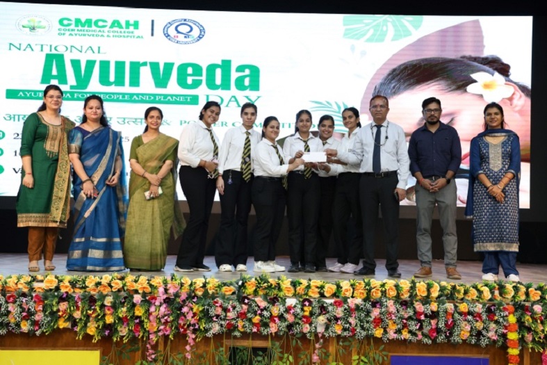 MOU - CMCAH and Ministry of Textiles, Govt. of India. COER Medical College of Ayurveda and Hospital signed an MoU with the Office of the Development Commissioner (Handloom), Weaver’s Service Centre, Meerut (U.P.), Ministry of Textiles, Govt. of India on 30th September 2025. This collaboration will strengthen avenues of research, innovation, skill development, and knowledge sharing in the domains of textiles, handloom, and Ayurveda, unlocking new opportunities for our students and community. International Conference on recent advancements in Panchakarma - 2025 An International conference was organized at Uttarakhand ayurved university Rishikul campus, Haridwar on 29-30th September 2025. Dr.Vishakha and Dr. Shivangi, Assistant Professors of Panchakarma department attended conference along with BAMS students. National Ayurveda Day 2025 celebration CMCAH celebrated National Ayurveda Day on 23rd September 2025, through our Ayurvedic Ahar Utsaav competition, blood donation and Poster Competition, dedicated to the theme ‘Ayurveda for People and Planet’. Ayurvedic food, guided by ancient principles, goes beyond nourishment—it nurtures mind, body, and spirit, focusing on balance, health, and well-being. CMCAH Celebrated this day and created awareness about the transformative power of Ayurveda, where every bite is a step towards longevity, strength, and sustainable health for people and the planet. CME programme – Dr. Richa ojha, Assistant Professor in the Department of Rasa Shastra & Bhaishajya Kalpana, attended a 6-day CME programme for teachers of Rasa Shastra & Bhaishajya Kalpana, organized by R.A. Podar Medical College (Ayu), Mumbai, from 15th to 20th September 2025. The CME featured renowned speakers from across India who delivered insightful sessions on various concepts related to the subject. CME programme – Dr. Archana Bartwal, Assistant profeesor in the department of Shalakyatantra , attended a 6-day CME programme for teachers of Rasa Shastra & Bhaishajya Kalpana, organized by Shri Krishna AYUSH University, Kurushetra from 15th to 20th September 2025. The CME featured renowned speakers from across India who delivered insightful sessions on various concepts related to the subject as well as guided us about different diseases, its treatment modalities and successful case studies. CME programme – Dr. Vikas Jadon, Associate Professor in the Department of Kriya Sharir, attended a 6-day CME programme for teachers of Kriya Sharir, organized by National Institute of Ayurveda, Jaipur from 15th to 20th September 2025. The CME featured renowned speakers from across India who delivered insightful sessions on various concepts related to the subject. CME programme – Dr. Nrapendrakumar Arya, Associate profeesor in the department of Kayachikitsa, attended a 6-day CME programme for teachers of Kayachikitsa, organized by Shri Krishna AYUSH University, Kurushetra from 8th to 13th September 2025. The CME featured renowned speakers from across India who delivered insightful sessions on various concepts related to the subject as well as guided us about different diseases, its treatment modalities and successful case studies. CME programme – Dr. Nrapendrakumar Arya, Associate profeesor in the department of Kayachikitsa, attended a 6-day CME programme for teachers of Kayachikitsa, organized by Shri Krishna AYUSH University, Kurushetra from 8th to 13th September 2025. The CME featured renowned speakers from across India who delivered insightful sessions on various concepts related to the subject as well as guided us about different diseases, its treatment modalities and successful case studies. CME programme – Dr. Urvashi Semwal, Associate Professor in the Department of Rasa Shastra & Bhaishajya Kalpana, attended a 6-day CME programme for teachers of Rasa Shastra & Bhaishajya Kalpana, organized by All India Institute of Ayurveda, Delhi, from 8th to 13th September 2025. The CME featured renowned speakers from across India who delivered insightful sessions on various concepts related to the subject. CME programme – Dr. Parul Chauhan, Assistant Professor in the Department of Agadtantra, attended a 6-day CME programme for teachers of Agadtantra, organized by National Institute of Ayurveda, Jaipur from 11th to 16th August 2025. The CME featured renowned speakers from across India who delivered insightful sessions on various concepts related to the subject. Independence Day Celebration CMCAH celebrated the 79th Independence Day on 15th August 2025. The celebration was graced by the esteemed presence of Sh. J. C. Jain ji, President along with our faculties, staff members, and students. From the hoisting of the tricolor to the echoes of patriotic melodies, the day was a heartfelt tribute to our nation’s journey of courage, sacrifice, and progress. Here’s to keeping the spirit of freedom alive — today and always. Nashamukti Oath Students of COER medical college of Ayurveda and hospital took a pledge that they will keep themselves and family away from drugs and enjoy a hale and hearty life on 13th August, 2025 along with Faculty members. Acharya Charaka Jayanti Acharya Charak Jayanti was observed with great reverence at COER Medical College of Ayurveda & Hospital (CMCAH) to honour Acharya Charaka on 29th July 2025. Students and faculties paid heartfelt tribute by reciting verses from the Charak Samhita, the foundational text of Ayurveda that continues to guide generations in holistic healing and well-being. World Hepatitis day seminar CMCAH organized a session on World hepatitis Day 2025 on 28th July 2025 with experts Dr. Rajani, Gynecologist from AIIMS hospital, Dr. Amit, oncologist from MAX Hospital, Dr. Ranjita, dietician and Dr. Pankaj, physician from Jollygrant hospital and Dr. Nitin from CMCAH. The event emphasized the importance of early detection, prevention, and management of Hepatitis, empowering our students. Free health checkup camp for Kanwariyas CMCAH organized a free health check